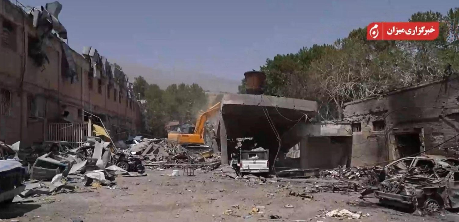 En las imágenes de satélite del 30 de junio de 2025 se aprecian daños importantes en parte del tejado del ala oeste del edificio del Grupo de Protección. Las imágenes de satélite muestran además que, al este del edificio, una puerta interna, un muro perimetral y dos pequeñas estructuras —probablemente puestos de guardia— quedaron destruidos por el ataque.